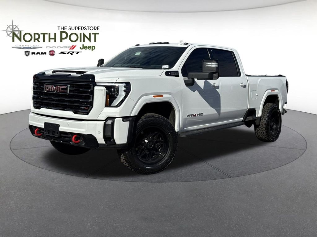 Thank you for viewing this Pre-owned 2024 GMC Sierra 2500HD 4WD Crew Cab 159 AT4 offered in Summit White with the Jet Black with Kalahari accents interior! This Sierra 2500HD comes well-equipped with the following options: Adaptive Cruise, Backup Camera, Blind Spot Detection, Cross-Traffic Alert, Daytime Running Lights, Fog Lamps, Forward Collision Warning, Lane Departure Warning, Park Assist, Security System, Tire Pressure Monitor, Apple CarPlay, Auxiliary Audio Input, Bluetooth, GPS Navigation, MP3 Player, Premium Sound System, SiriusXM, Steering Wheel Audio Controls, WiFi Hotspot, Bucket Seats, Leather Seating, Power Driver Seat, Power Passenger Seat, Driver's Side Memory, Heated Front Seats, Ventilated Front Seats, Heated Second Row Seats, Heated Steering Wheel, Keyless Entry, Climate Control, Keyless Start, Remote Start, Power Door Locks, Power Mirrors, Power Windows, Aluminum Wheels, Power Sunroof, Side Steps, Tow Package, Trailer Brake Controller, Locking/Limited Slip Differential, Four Wheel Drive, Gas V8 6.6L/ Engine, 10-Speed Automatic Transmission and much more! And with North Point's attractive financing offers, driving a quality pre-owned Sierra 2500HD has never been easier! North Point believes you deserve an exceptional pre-owned GMC purchase experience! Get it from a dealer who truly cares by visiting North Point Chrysler Dodge Fiat Jeep Ram at 7726 North Point BLVD, Winston-Salem, NC 27106. The Showroom Hours are 9am-7pm Monday-Friday, 9am-6pm Saturdays, and Closed Sundays. Or visit us anytime at www.NorthPointCJD.com!