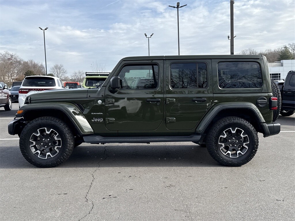 Thank you for viewing this Certified Pre-owned 2024 Jeep Wrangler Sahara 4 Door 4x4 offered in Sarge Green Clearcoat with the Black interior! This Wrangler comes well-equipped with the following options: Adaptive Cruise, Backup Camera, Blind Spot Detection, Daytime Running Lights, Fog Lamps, LED Headlights, Park Assist, Security System, Tire Pressure Monitor, Apple CarPlay, Google Android Auto, Auxiliary Audio Input, Bluetooth, GPS Navigation, HD Radio, MP3 Player, SiriusXM, Steering Wheel Audio Controls, Touch Screen Display, WiFi Hotspot, Bucket Seats, Heated Front Seats, Heated Steering Wheel, Keyless Entry, Climate Control, Keyless Start, Remote Start, Power Door Locks, Power Mirrors, Power Windows, Aluminum Wheels, 3 Piece Hard Top, Side Steps, Locking/Limited Slip Differential, Four Wheel Drive, Intercooled Turbo Premium Unleaded I-4 2.0 L/122 Engine, 8-Speed Automatic w/OD Transmission and much more! The Jeep Pre-owned Certification provides up to a 7-Year/100,000 Mile Powertrain Limited Warranty! The free Carfax 2-Owner History Report contains no reported accidents or damage history and includes details on its most recent service at North Point and the Carfax Buyback Guarantee! And with North Point's attractive financing offers, driving a quality pre-owned Wrangler has never been easier! North Point believes you deserve an exceptional pre-owned Jeep purchase experience! Get it from a dealer who truly cares by visiting North Point Chrysler Dodge Fiat Jeep Ram at 7726 North Point BLVD, Winston-Salem, NC 27106. The Showroom Hours are 9am-7pm Monday-Friday, 9am-6pm Saturdays, and Closed Sundays. Or visit us anytime at www.NorthPointCJD.com! **********All Pre-Owned Vehicle pricing includes $1,500 finance cash. See Disclaimer for terms and conditions.
