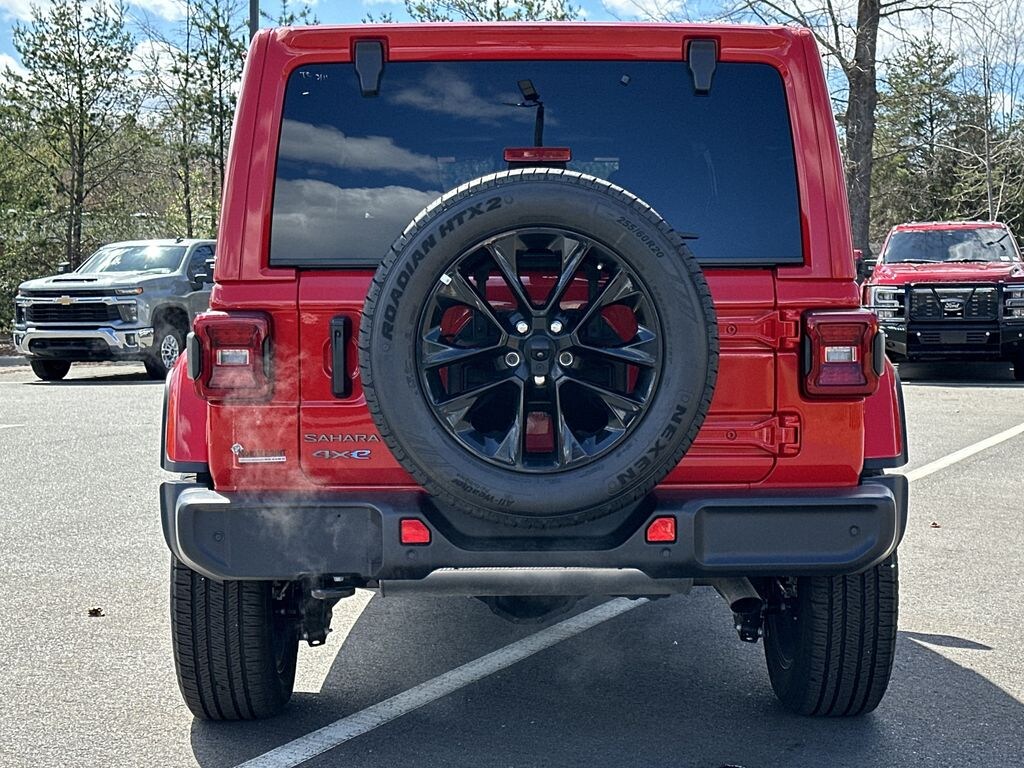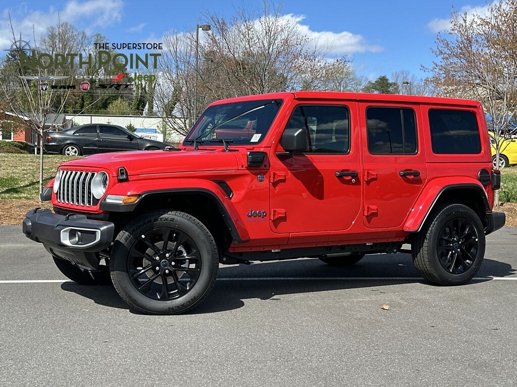 Thank you for viewing this Pre-owned 2025 Jeep Wrangler 4xe Sahara 4x4 offered in Firecracker Red Clearcoat with the Black interior! This Wrangler 4xe comes well-equipped with the following options: Adaptive Cruise, Backup Camera, Blind Spot Detection, Daytime Running Lights, Fog Lamps, LED Headlights, Park Assist, Security System, Tire Pressure Monitor, Apple CarPlay, Google Android Auto, Auxiliary Audio Input, Bluetooth, MP3 Player, SiriusXM, Steering Wheel Audio Controls, WiFi Hotspot, Bucket Seats, Heated Front Seats, Heated Steering Wheel, Keyless Entry, Climate Control, Keyless Start, Remote Start, Power Door Locks, Power Mirrors, Power Windows, Aluminum Wheels, 3 Piece Hard Top, Locking/Limited Slip Differential, Four Wheel Drive, Intercooled Turbo Gas/Electric I-4 2.0 L/122 Engine, 8-Speed Automatic w/OD Transmission and much more! The free Carfax 1-Owner History Report contains no reported accidents or damage history and includes details on its most recent service at North Point and the Carfax Buyback Guarantee! And with North Point's attractive financing offers, driving a quality pre-owned Wrangler 4xe has never been easier! North Point believes you deserve an exceptional pre-owned Jeep purchase experience! Get it from a dealer who truly cares by visiting North Point Chrysler Dodge Fiat Jeep Ram at 7726 North Point BLVD, Winston-Salem, NC 27106. The Showroom Hours are 9am-7pm Monday-Friday, 9am-6pm Saturdays, and Closed Sundays. Or visit us anytime at www.NorthPointCJD.com!