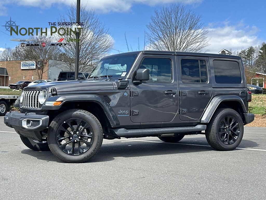 Thank you for viewing this Certified Pre-owned 2025 Jeep Wrangler 4xe Sahara 4x4 offered in Granite Crystal Metallic Clearcoat with the Black interior! This Wrangler 4xe comes well-equipped with the following options: Adaptive Cruise, Backup Camera, Daytime Running Lights, Fog Lamps, LED Headlights, Security System, Tire Pressure Monitor, Apple CarPlay, Google Android Auto, Auxiliary Audio Input, Bluetooth, MP3 Player, SiriusXM, Steering Wheel Audio Controls, WiFi Hotspot, Bucket Seats, Heated Front Seats, Heated Steering Wheel, Keyless Entry, Climate Control, Keyless Start, Remote Start, Power Door Locks, Power Mirrors, Power Windows, Aluminum Wheels, 3 Piece Hard Top, Side Steps, Locking/Limited Slip Differential, Four Wheel Drive, Intercooled Turbo Gas/Electric I-4 2.0 L/122 Engine, 8-Speed Automatic w/OD Transmission and much more! The Jeep Pre-owned Certification provides up to a 7-Year/100,000 Mile Powertrain Limited Warranty! The free Carfax 1-Owner History Report contains no reported accidents or damage history and includes details on its most recent service at North Point and the Carfax Buyback Guarantee! And with North Point's attractive financing offers, driving a quality pre-owned Wrangler 4xe has never been easier! North Point believes you deserve an exceptional pre-owned Jeep purchase experience! Get it from a dealer who truly cares by visiting North Point Chrysler Dodge Fiat Jeep Ram at 7726 North Point BLVD, Winston-Salem, NC 27106. The Showroom Hours are 9am-7pm Monday-Friday, 9am-6pm Saturdays, and Closed Sundays. Or visit us anytime at www.NorthPointCJD.com!